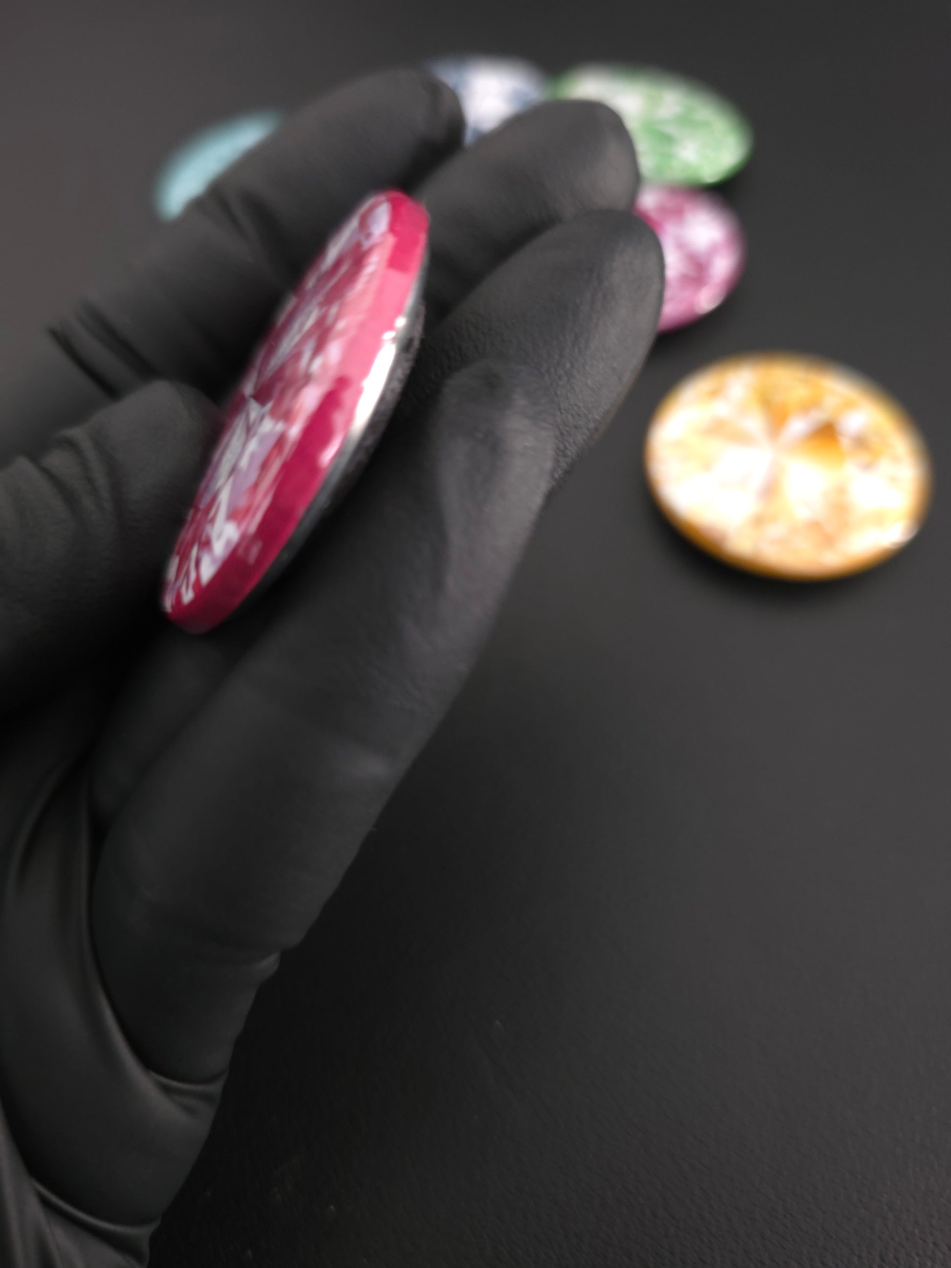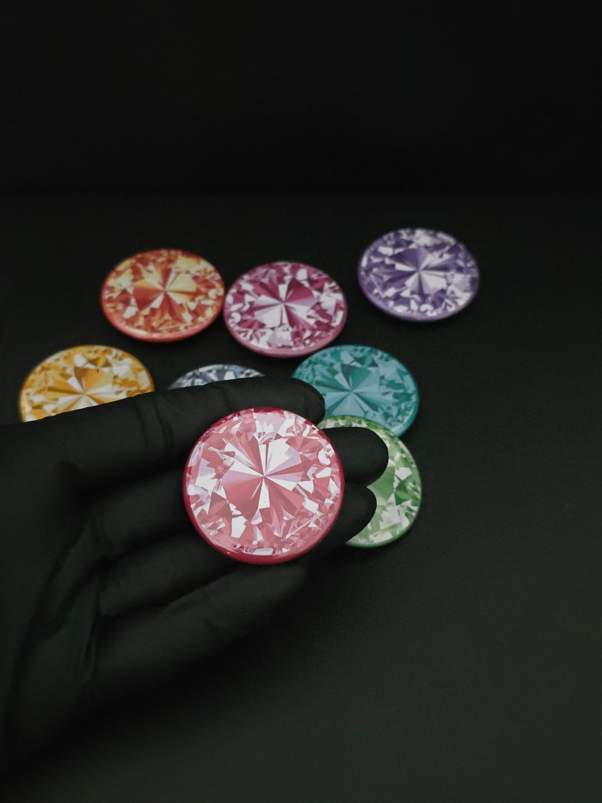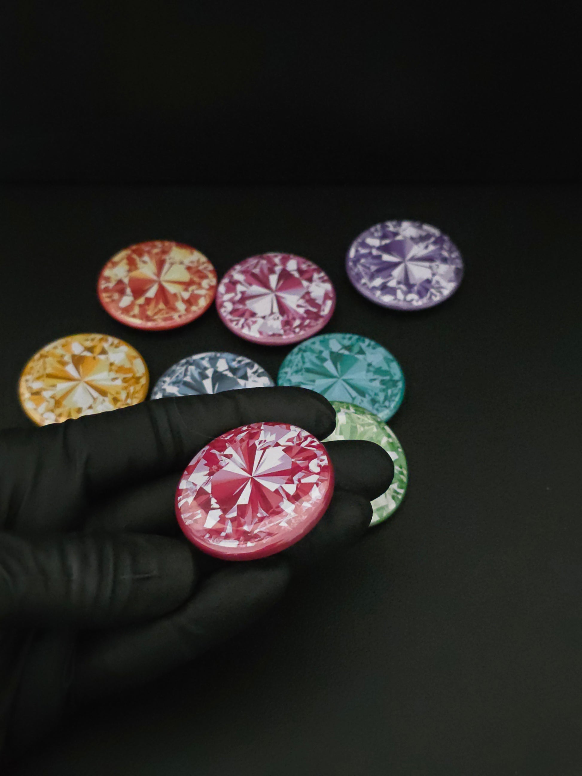 Add a pop of color and sparkle to your space with this stunning set of 9 handcrafted gemstone-style magnets. Each magnet is designed to resemble a radiant cut gem, with bold, vibrant colors and a glossy finish that catches the light beautifully.