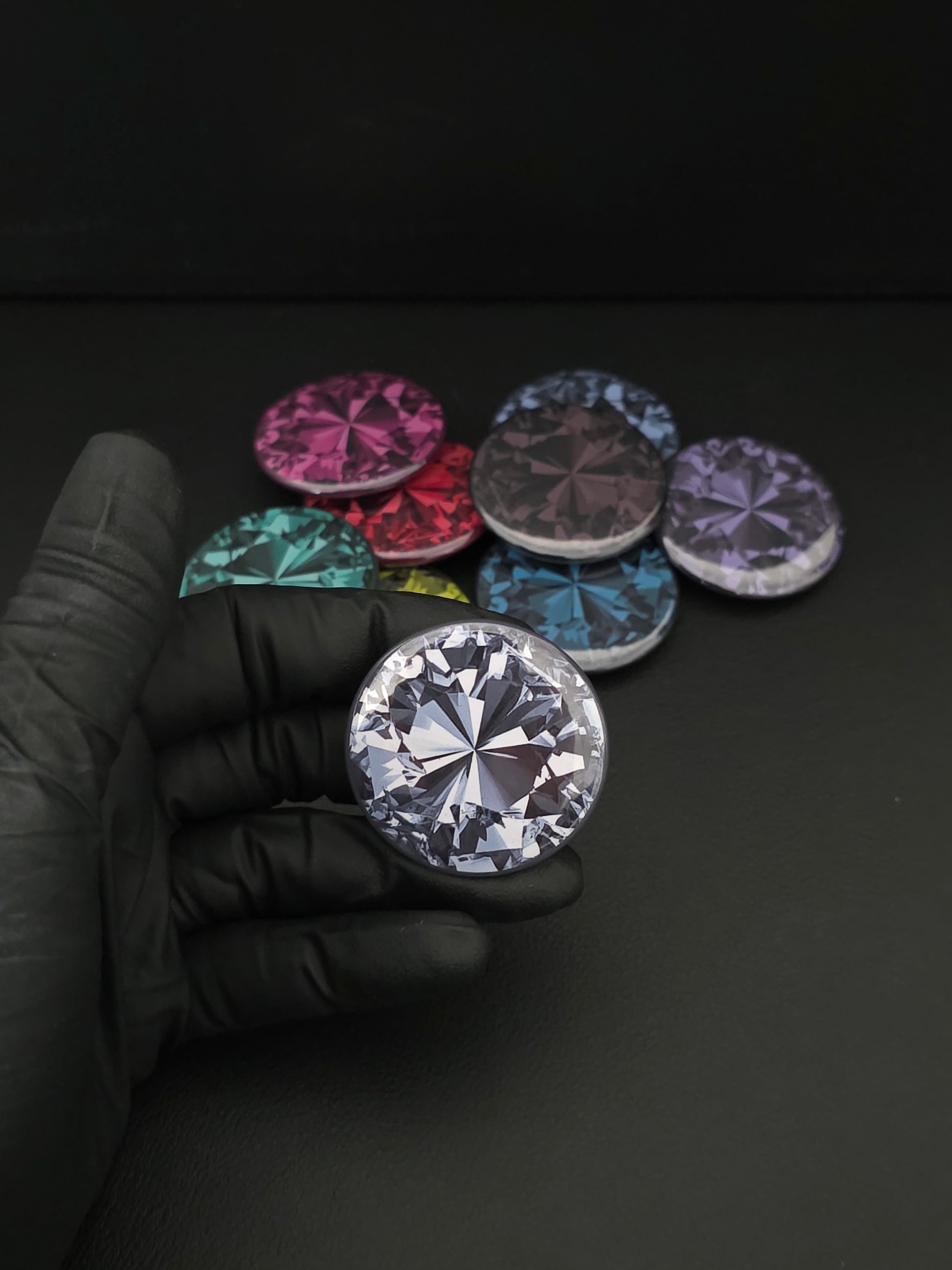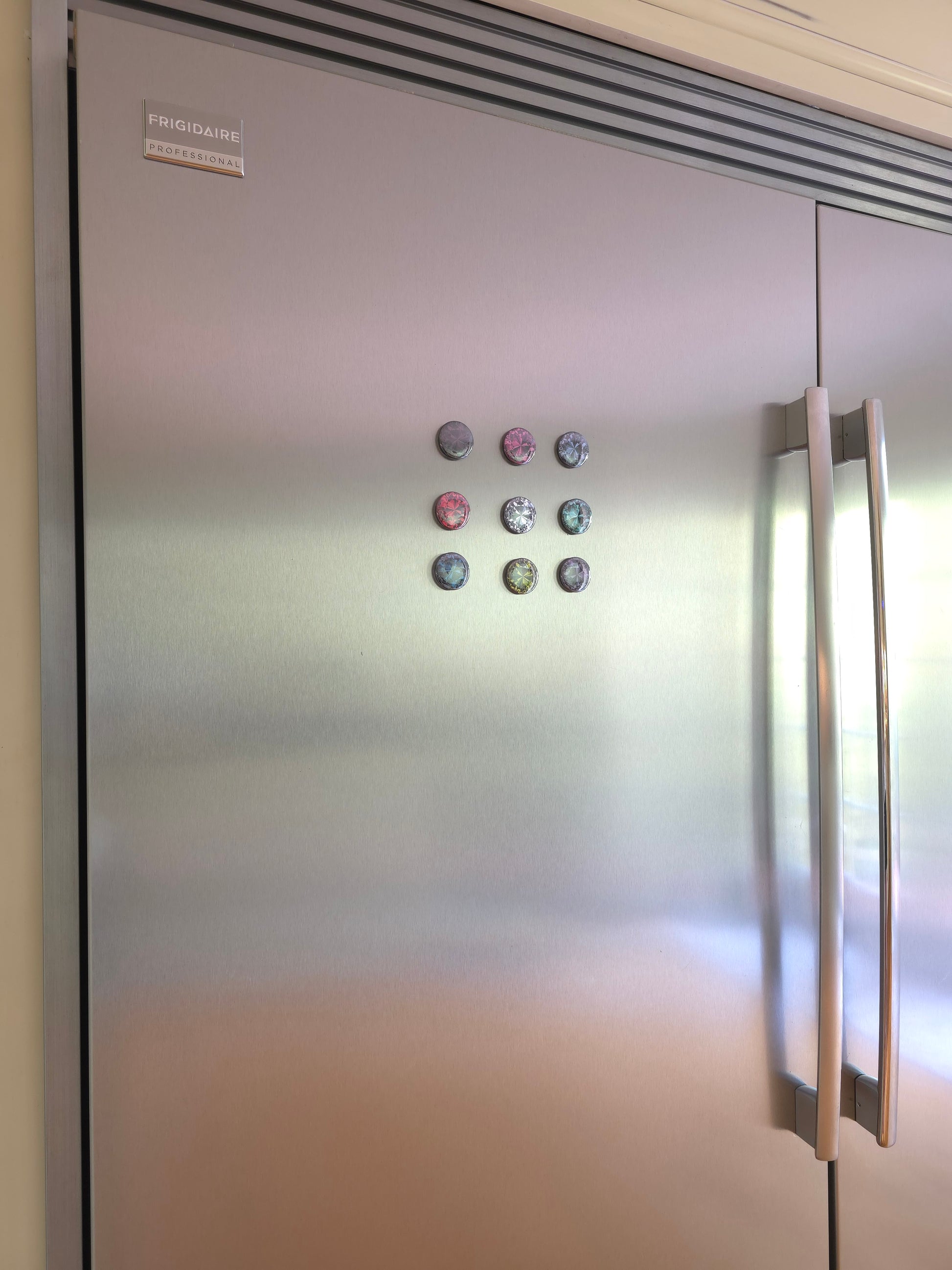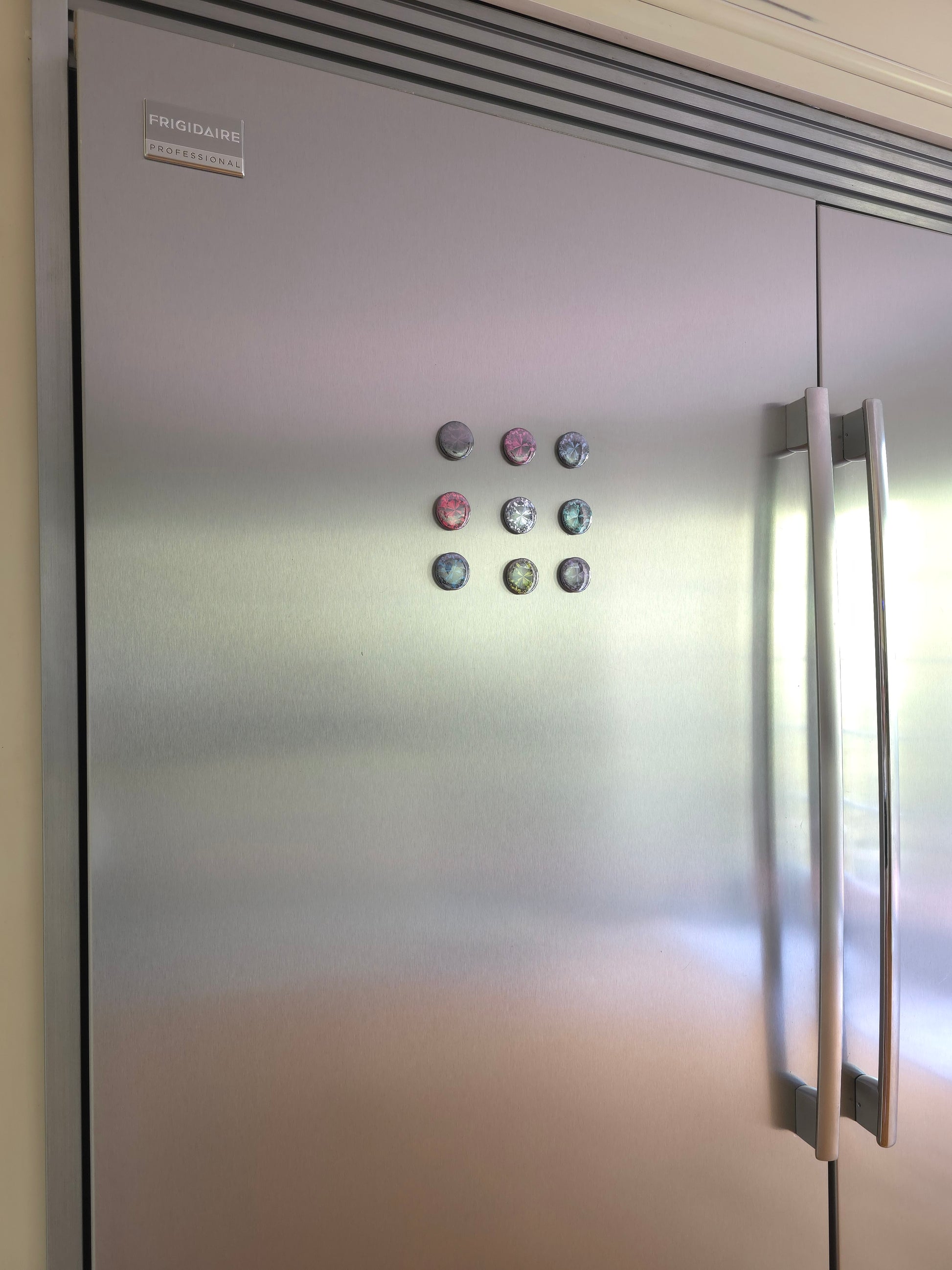 Add a pop of color and sparkle to your space with this stunning set of 9 handcrafted gemstone-style magnets. Each magnet is designed to resemble a radiant cut gem, with bold, vibrant colors and a glossy finish that catches the light beautifully.