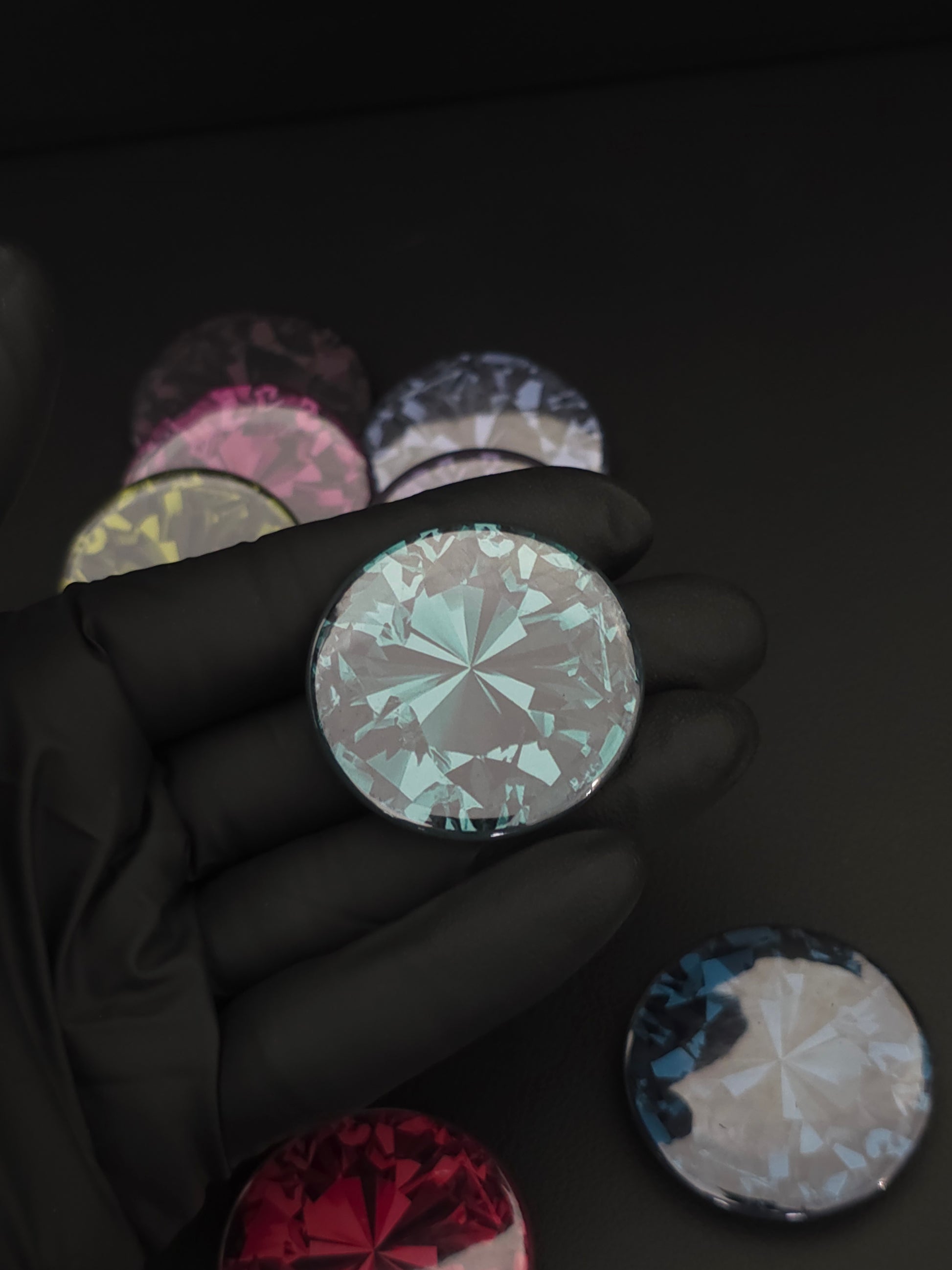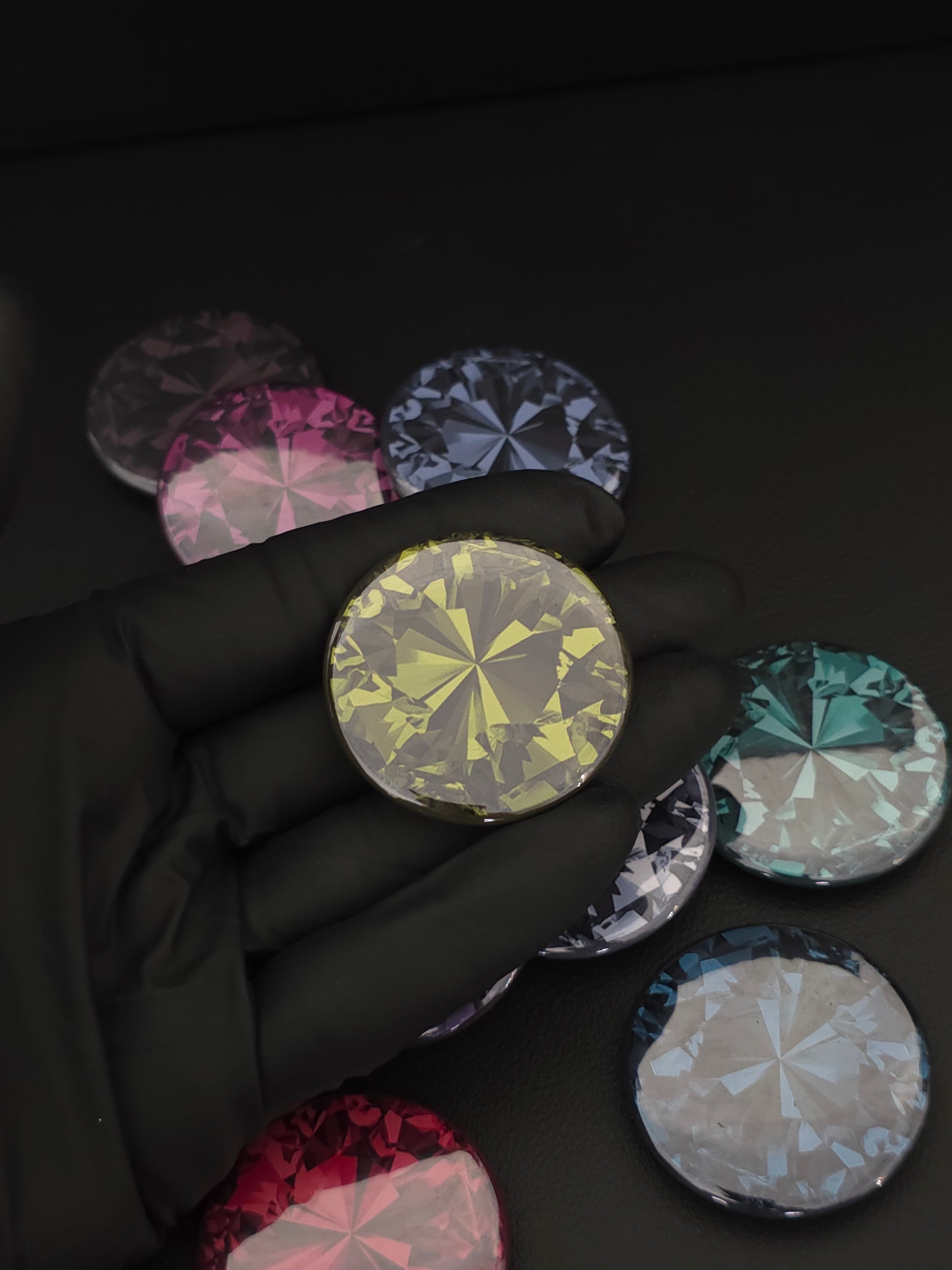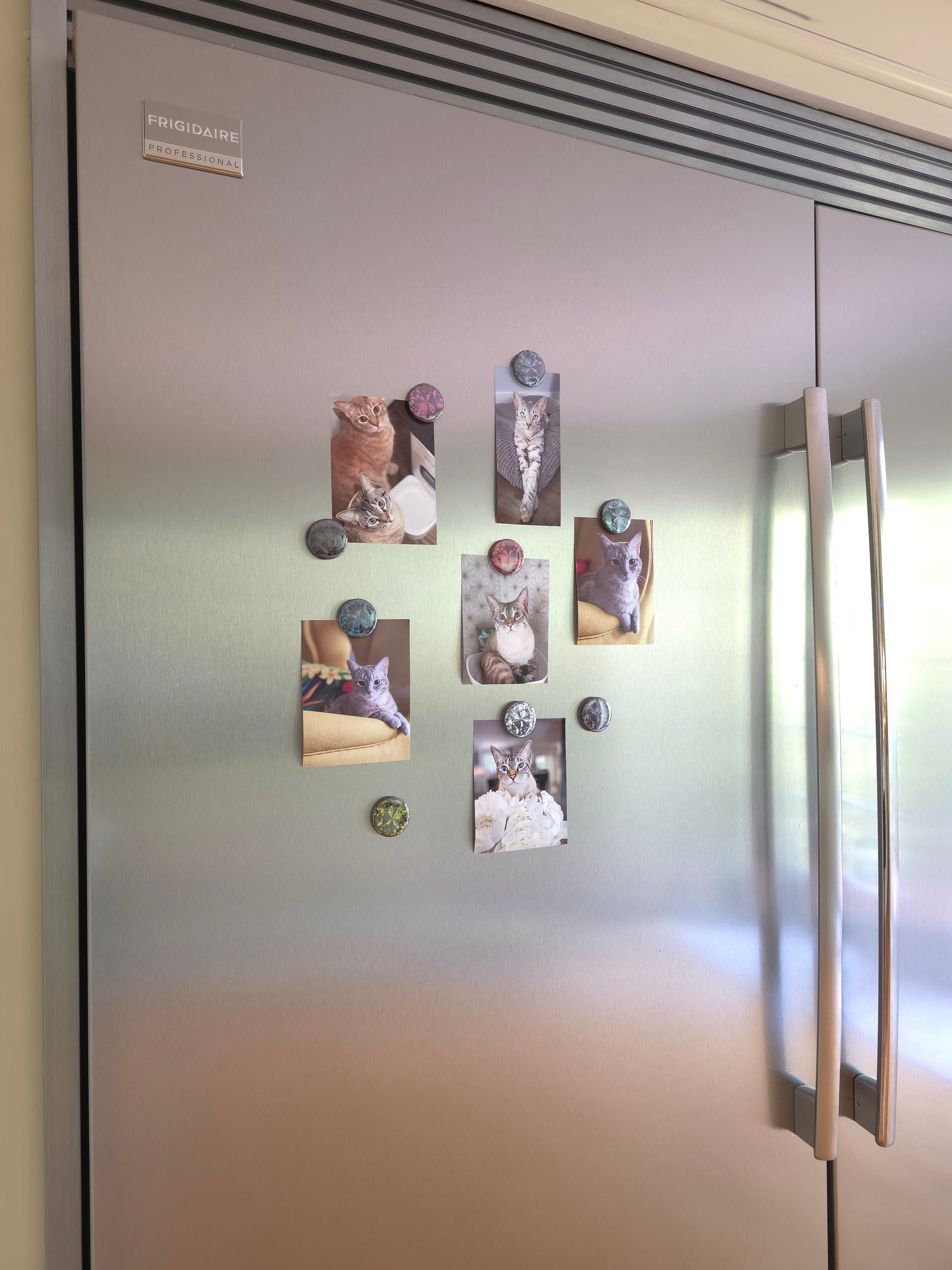 Add a pop of color and sparkle to your space with this stunning set of 9 handcrafted gemstone-style magnets. Each magnet is designed to resemble a radiant cut gem, with bold, vibrant colors and a glossy finish that catches the light beautifully.