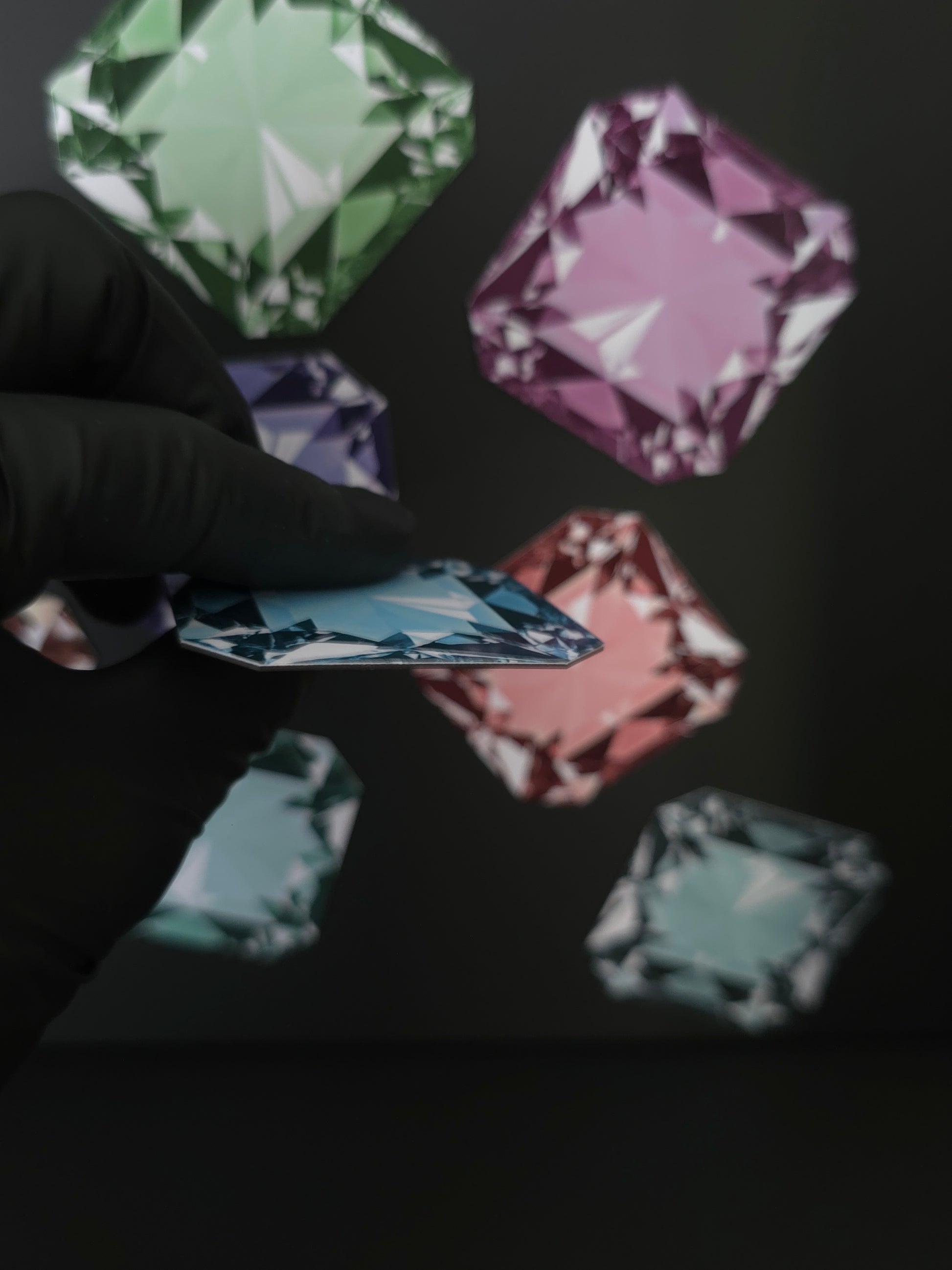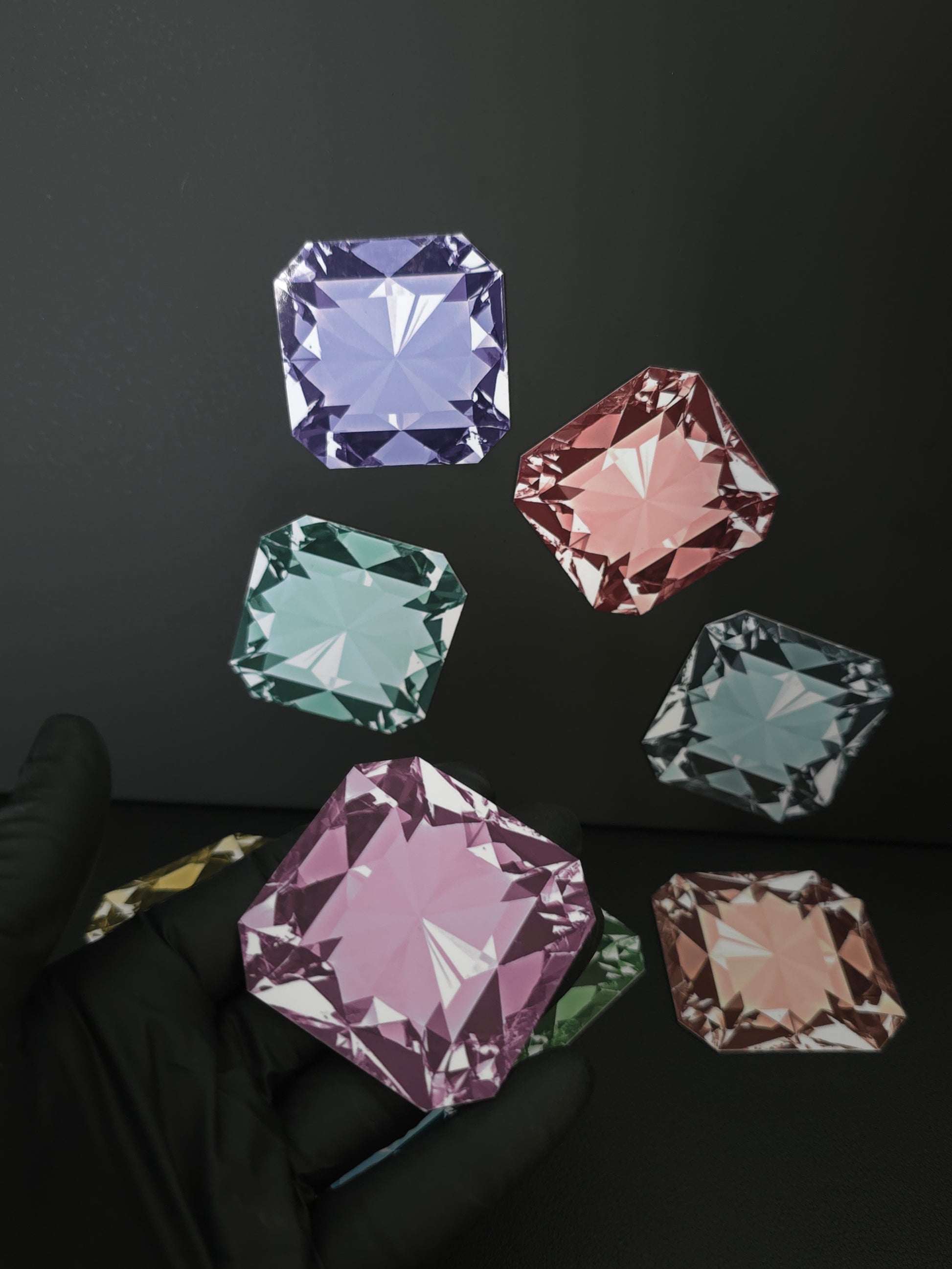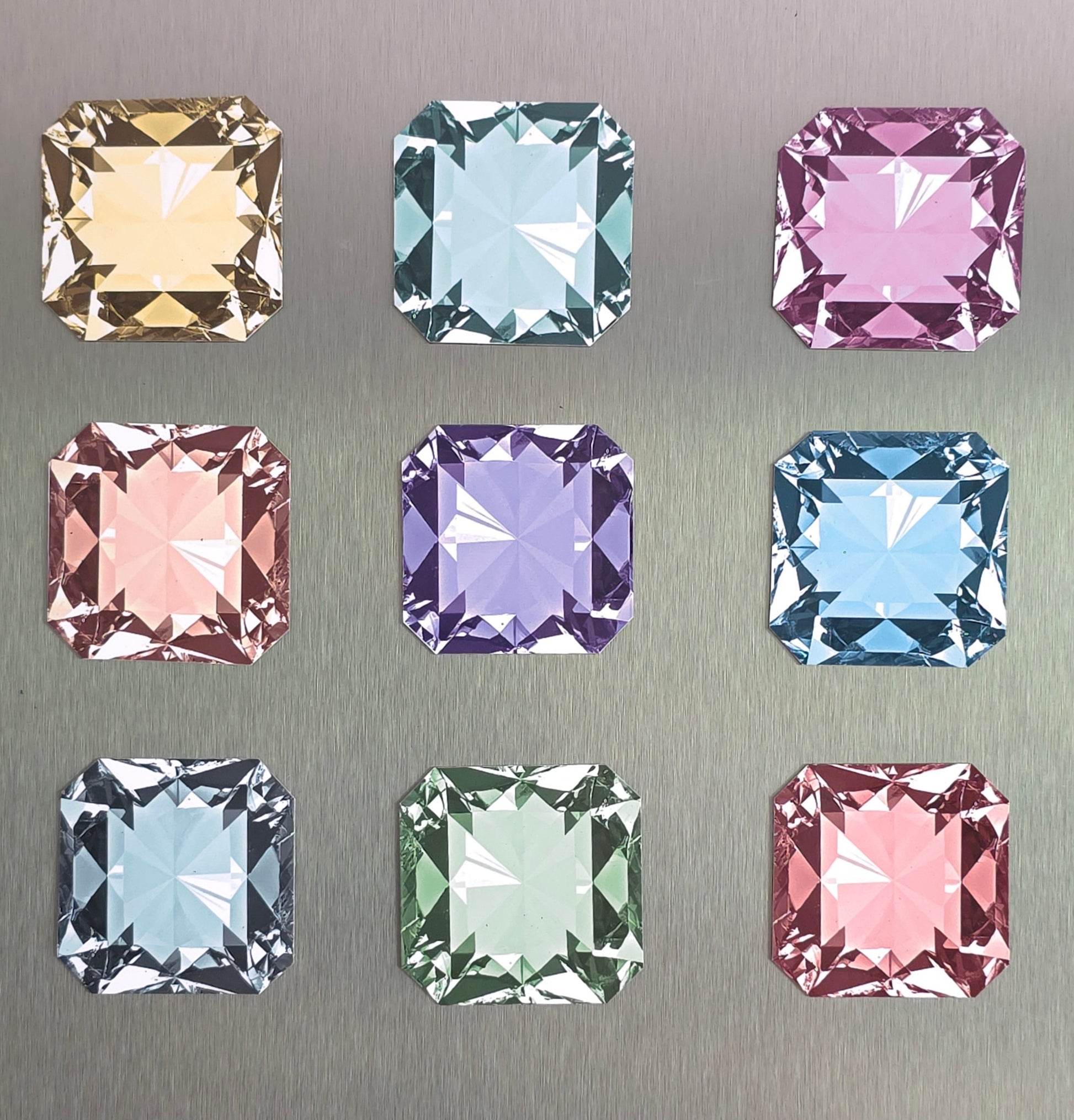 Add a pop of color and sparkle to your space with this stunning set of 9 handcrafted gemstone-style magnets. Each magnet is designed to resemble a radiant-cut gem, with bold, vibrant colors and a glossy finish that catches the light beautifully.